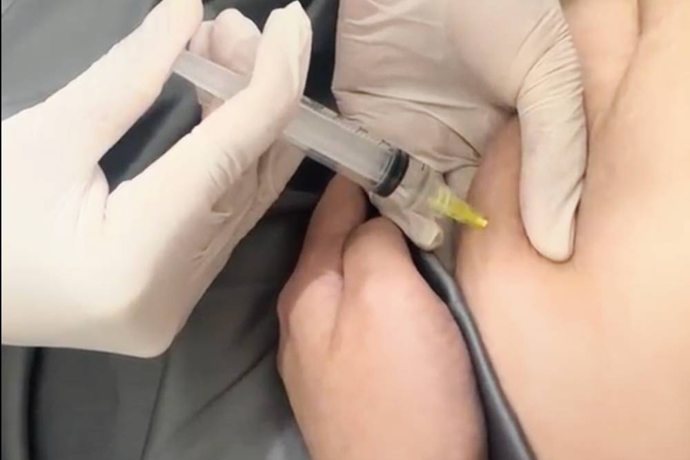 Untuk mengurangi lebam atau kemerahan di area suntikan, pasien dapat menggunakan salep seperti Zambuk atau Thrombophob.